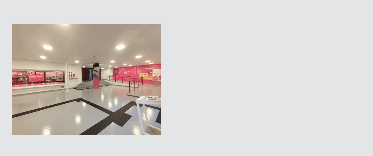 O projeto foi elaborado para o saguão do auditório do IJC. Ele apresenta marcos institucionais que sustentam os valores do instituto.