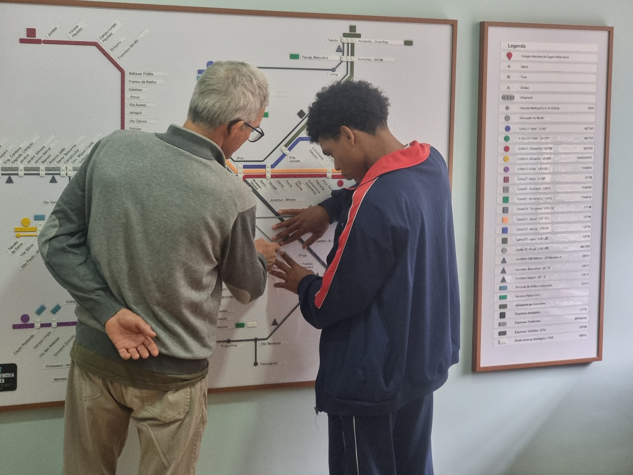 Trabalhamos na produção de dois materiais que serão utilizados nas aulas de Orientação e Mobilidade, contribuindo para o estudo e independência dos estudantes. A maquete tátil do colégio apresenta cada prédio e o caminho entre eles, podendo auxiliar no reconhecimento do espaço e sua escala. O outro recurso é um mapa tátil do Metrô de São Paulo, fundamental para o aprendizado dos alunos, auxiliando no deslocamento pela cidade e contribuindo com a sua autonomia.
