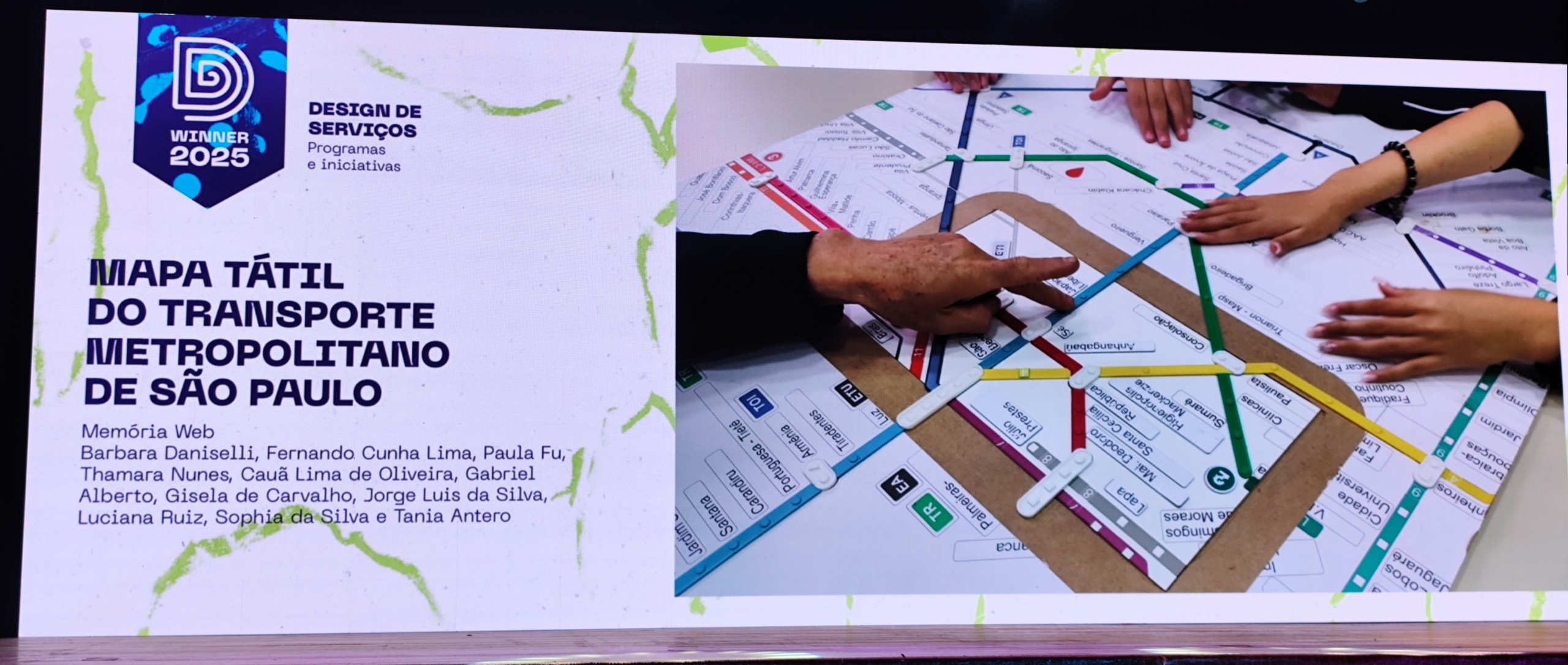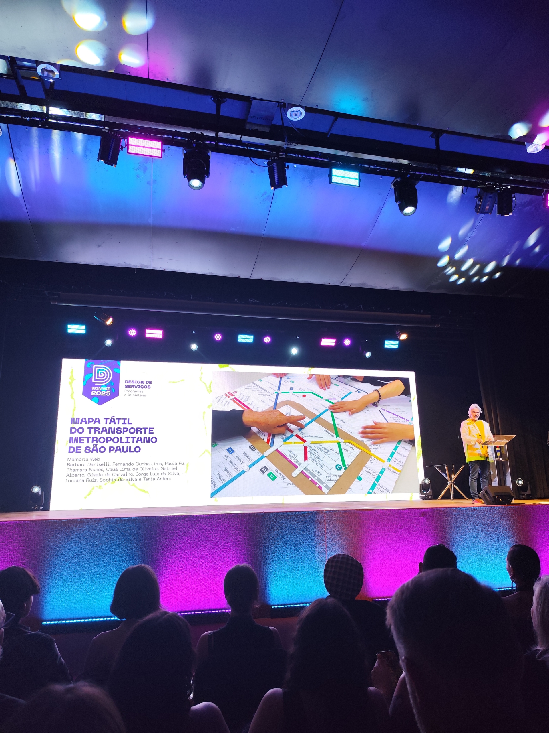 Esse projeto, fundamental para nossa experiência na área da acessibilidade, recebeu o Troféu Curupira do Design for a Better World Award, premiação promovida pelo Centro Brasil Design. A cerimônia ocorreu no dia 27 de novembro de 2025, no Museu Oscar Niemeyer, em Curitiba/PR.